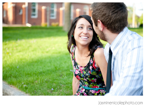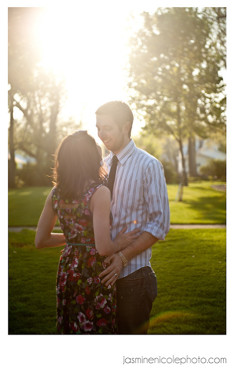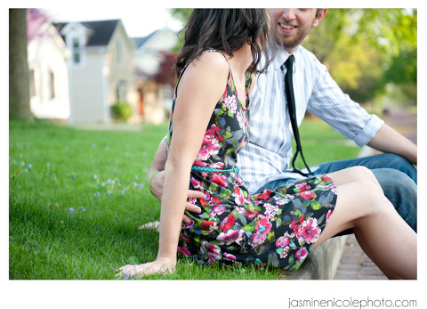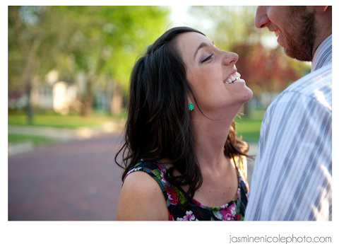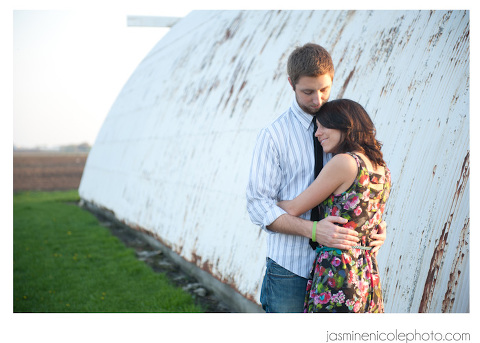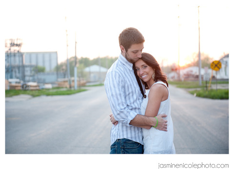 So we did this shoot in Gibson City, IL. Ever head of it? I was visiting my future M-I-L taking care of some wedding planning! She is amazing and a regular Martha Stewart. Seriously, she is totally pwning all our wedding decor as I write. (Yes, I really did just say pwn in my blog, don’t judge me!) Jess and Alex came up to visit for our shoot, and would you believe, we hardly went to two different locations for all these lovely shots. The light was amazing, and the couple, well…just look at them! It was hard to beat :)